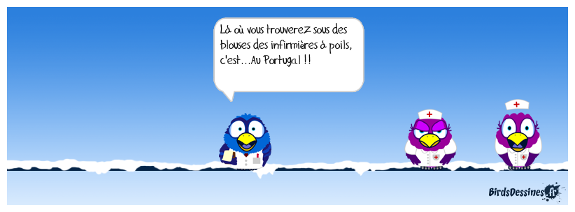 Case 1: | Case 2: Bird 1: Là où vous trouverez sous des blouses des infirmières à poils, c'est...Au Portugal !! | Case 3: