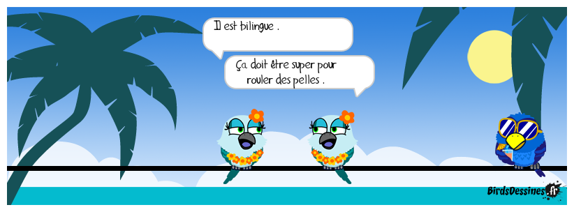 Case 1:Bird 2: | Case 2: Bird 1: Il est bilingue . Bird 2: Ça doit être super pour rouler des pelles . | Case 3: