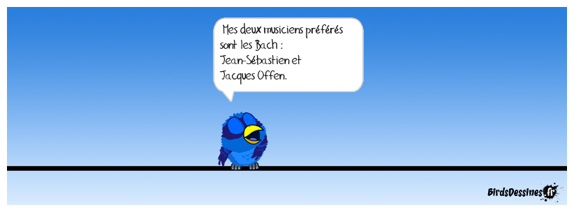 Case 1: | Case 2: Bird 1: Mes deux musiciens préférés sont les Bach : Jean-Sébastien et Jacques Offen. | Case 3: