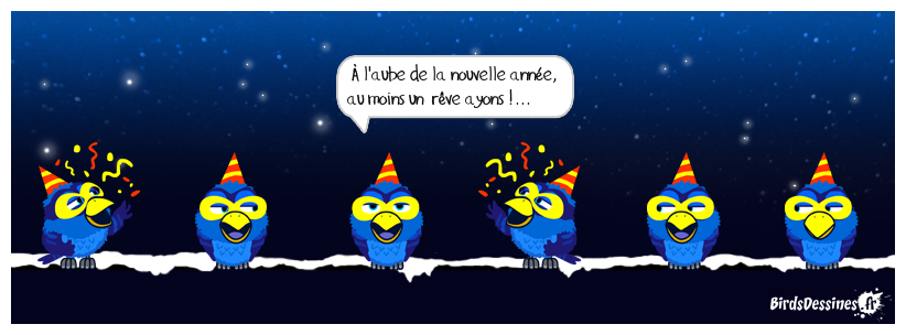Case 1: | Case 2: Bird 1: À l'aube de la nouvelle année, au moins un rêve ayons !... | Case 3: