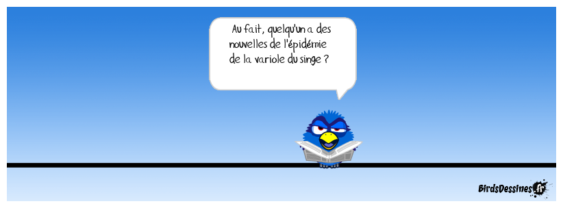 Case 1:Bird 1: Des fois... | Case 2: Bird 1: Au fait, quelqu'un a des nouvelles de l'épidémie de la variole du singe ? Bird 2: Va dans une station essence et double tout le monde... | Case 3: Bird 1: ... C'est un café... Et 1 million d'Euros !!!