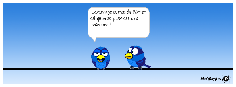 Case 1: | Case 2: Bird 1: L'avantage du mois de Février est qu'on est pauvres moins longtemps ! | Case 3: