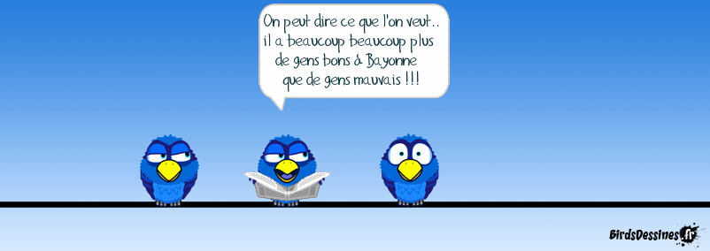 Case 1: Case 2:Bird 1: On peut dire ce que l'on veut.. il a beaucoup beaucoup plus de gens bons à Bayonne que de gens mauvais !!! Case 3: