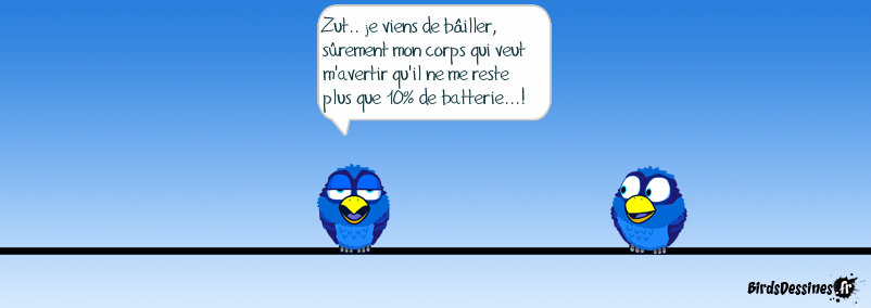 Case 1: Case 2:Bird 1: Zut.. je viens de bâiller, sûrement mon corps qui veut m'avertir qu'il ne me reste plus que 10% de batterie...! Case 3: