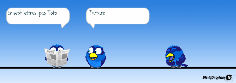 Case 1:Bird 1: En sept lettres: pas Toto. Case 2:Bird 1: Tartare. Case 3: