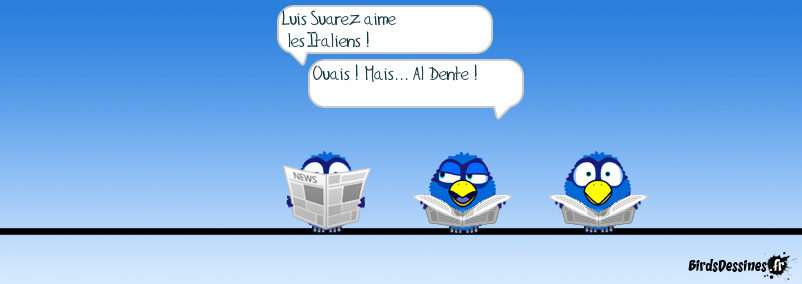Case 1: Case 2:Bird 1: Luis Suarez aime les Italiens !Bird 2: Ouais ! Mais... Al Dente ! Case 3: