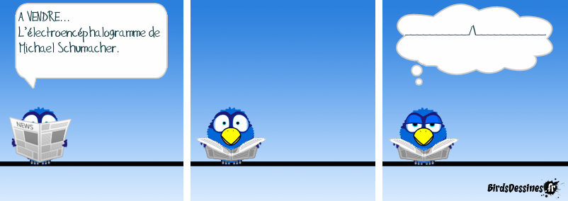 Case 1:Bird 1: A VENDRE... L’électroencéphalogramme de Michael Schumacher. Case 2: Case 3:Bird 1: __________/\___________