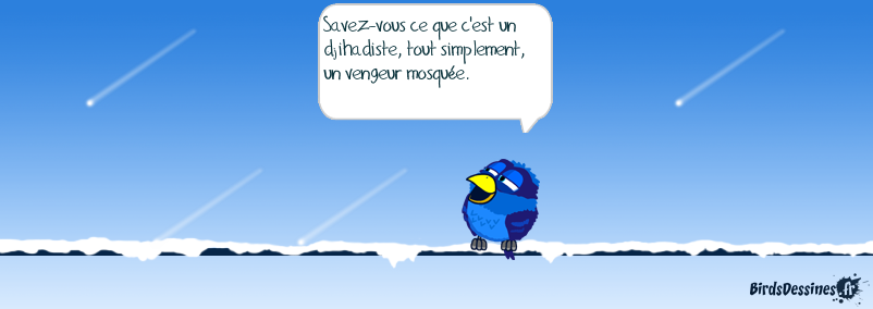 Case 1: Case 2:Bird 1: Savez-vous ce que c'est un djihadiste, tout simplement, un vengeur mosquée. Case 3: