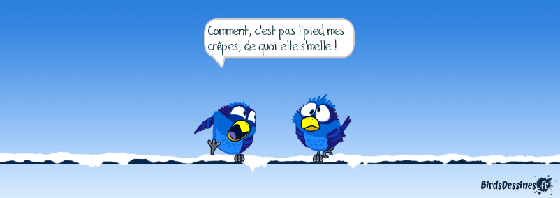 Case 1: Case 2:Bird 1: Comment, c'est pas l'pied mes crêpes, de quoi elle s'melle ! Case 3: