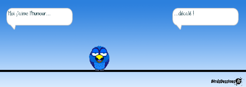Case 1:Bird 1: Moi j'aime l'humour... Case 2: Case 3:Bird 1: ...décalé !