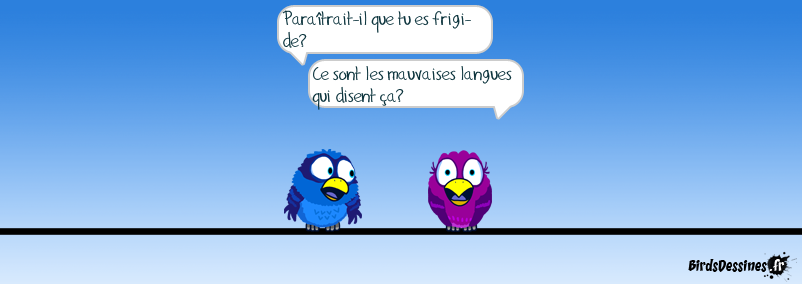 Case 1: Case 2:Bird 1: Paraïtrait-il que tu es frigi- de?Bird 2: Ce sont les mauvaises langues qui disent ça? Case 3: