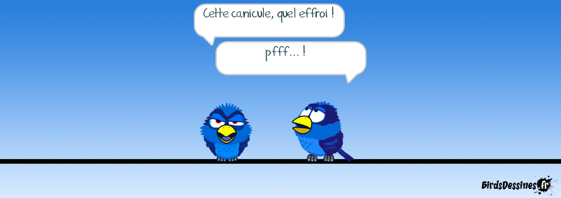 Case 1: Case 2:Bird 1: Cette canicule, quel effroi !Bird 2: pfff... ! Case 3: