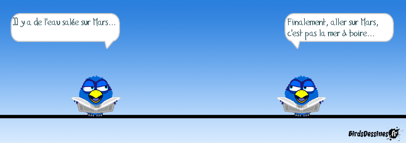 Case 1:Bird 1: Il y a de l'eau salée sur Mars... Case 2: Case 3:Bird 1: Finalement, aller sur Mars, c'est pas la mer à boire...