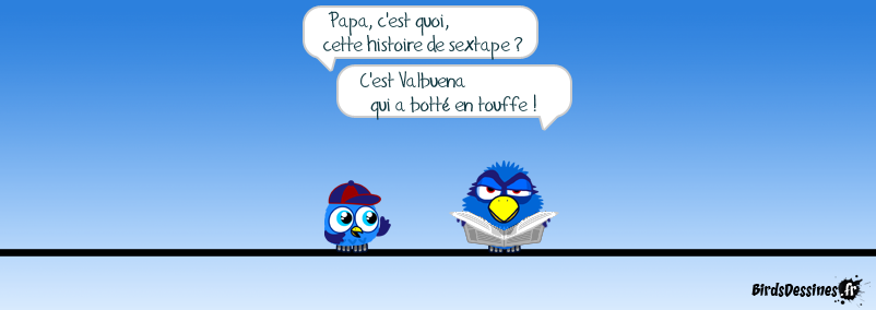 Case 1: Case 2:Bird 1: Papa, c'est quoi, cette histoire de sextape ?Bird 2: C'est Valbuena qui a botté en touffe ! Case 3: