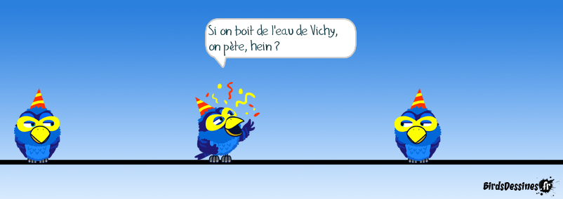 Case 1: Case 2:Bird 1: Si on boit de l'eau de Vichy, on pète, hein ? Case 3: