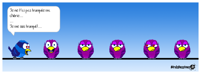 Case 1:Bird 1: Je ne t'ai pas trompée ma chérie... ... Je me suis trompé!... | Case 2: | Case 3: