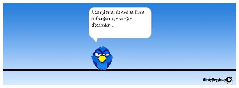 Case 1: | Case 2: Bird 1: A ce rythme, ils vont se faire refourguer des vierges d'occasion... | Case 3: