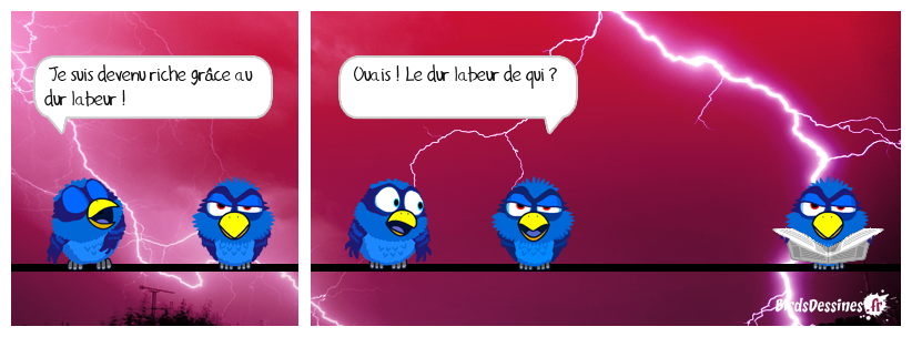 Case 1:Bird 1: Je suis devenu riche grâce au dur labeur ! | Case 2: Bird 1: Ouais ! Le dur labeur de qui ? | Case 3: