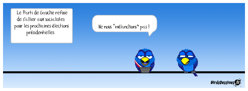 Case 1:Bird 1: Le Parti de Gauche refuse de s'allier aux socialistes pour les prochaines élections présidentielles | Case 2: Bird 1: Ne nous «mélanchons» pas ! | Case 3: