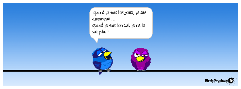 Case 1: | Case 2: Bird 1: quand je vois tes yeux, je suis amoureux ... quand je vois ton cul, je ne le suis plus ! | Case 3: