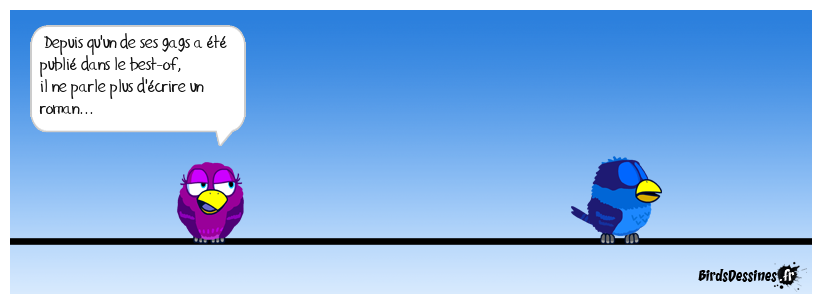 Case 1:Bird 1: Depuis qu'un de ses gags a été publié dans le best-of, il ne parle plus d'écrire un roman... | Case 2: | Case 3: