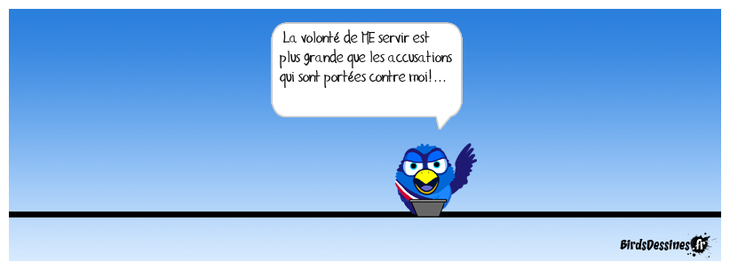 Case 1: | Case 2: Bird 1: La volonté de ME servir est plus grande que les accusations qui sont portées contre moi!... | Case 3: