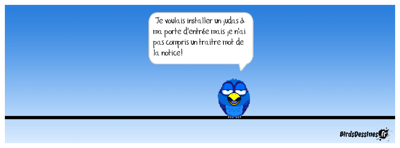 Case 1: | Case 2: Bird 1: Je voulais installer un judas à ma porte d'entrée mais je n'ai pas compris un traitre mot de la notice! | Case 3: