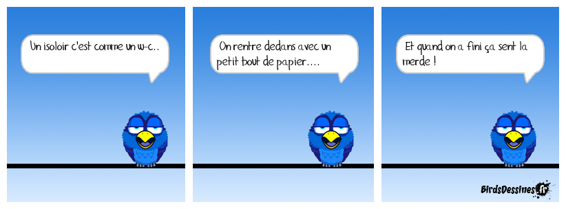 Case 1:Bird 1: Un isoloir c'est comme un w-c.. | Case 2: Bird 1: On rentre dedans avec un petit bout de papier.... | Case 3: Bird 1: Et quand on a fini ça sent la merde !