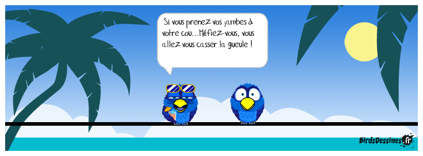 Case 1: | Case 2: Bird 1: Si vous prenez vos jambes à votre cou...Méfiez-vous, vous allez vous casser la gueule ! | Case 3: