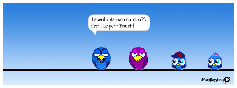 Case 1: | Case 2: Bird 1: Le véritable inventeur du GPS c'est...Le petit Poucet ! | Case 3: