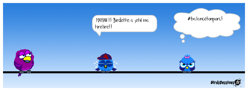Case 1: | Case 2: Bird 1: MAMAN !! Birdette a jeté ma tirelire!! | Case 3: Bird 1: #balancetonporc!