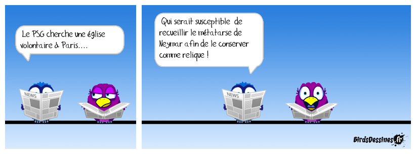 Case 1:Bird 1: Le PSG cherche une église volontaire à Paris.... | Case 2: Bird 1: Qui serait susceptible de recueillir le métatarse de Neymar afin de le conserver comme relique ! | Case 3: