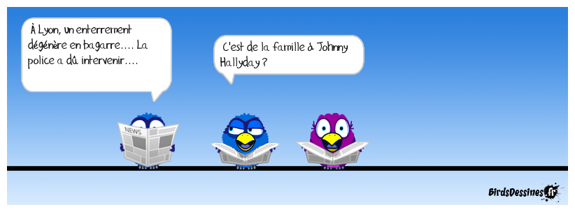 Case 1:Bird 1: À Lyon, un enterrement dégénère en bagarre.... La police a dû intervenir.... | Case 2: Bird 1: C'est de la famille à Johnny Hallyday ? | Case 3:
