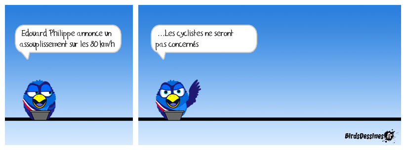 Case 1:Bird 1: Edouard Philippe annonce un assouplissement sur les 80 km/h | Case 2: Bird 1: ...Les cyclistes ne seront pas concernés | Case 3: