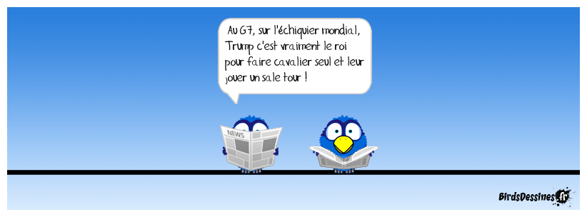 Case 1: | Case 2: Bird 1: Au G7, sur l'échiquier mondial, Trump c'est vraiment le roi pour faire cavalier seul et leur jouer un sale tour ! | Case 3: