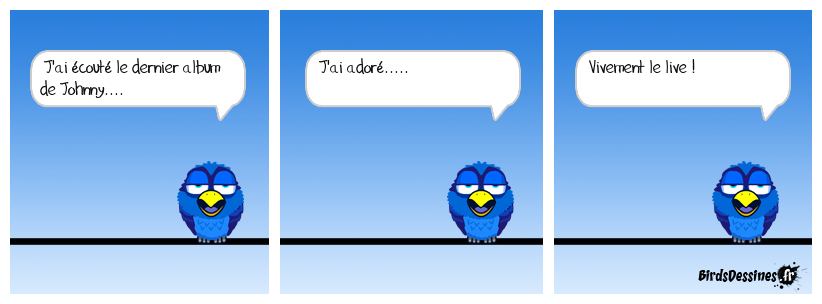 Case 1:Bird 1: J'ai écouté le dernier album de Johnny.... | Case 2: Bird 1: J'ai adoré..... | Case 3: Bird 1: Vivement le live !