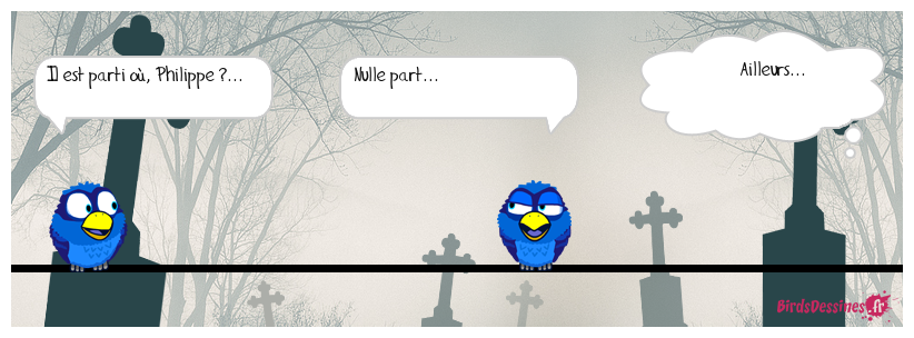Case 1:Bird 1: Il est parti où, Philippe ?... | Case 2: Bird 1: Nulle part... | Case 3: Bird 1: Ailleurs...