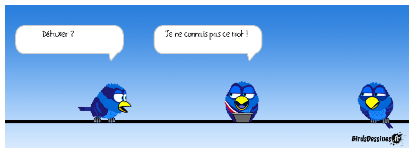 Case 1:Bird 1: Détaxer ? | Case 2: Bird 1: Je ne connais pas ce mot ! | Case 3: