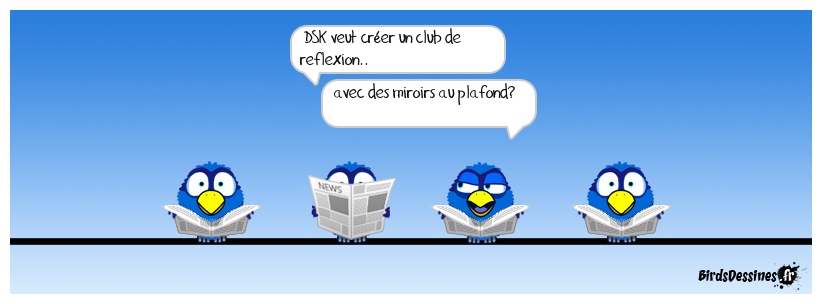Case 1: | Case 2: Bird 1: DSK veut créer un club de reflexion.. Bird 2: avec des miroirs au plafond? | Case 3: