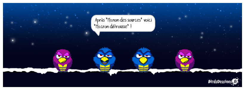 Case 1: | Case 2: Bird 1: Après "Manon des sources" voici "Macron détrousse" ! | Case 3: