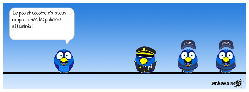 Case 1:Bird 1: Le poulet cocotte n'a aucun rapport avec les policiers efféminés ! | Case 2: | Case 3: