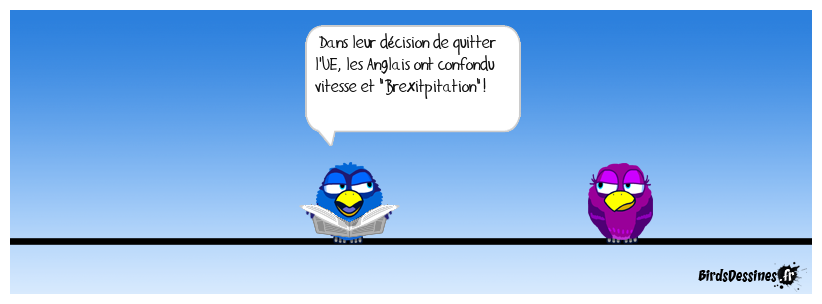 Case 1:Bird 1: Une "starstup" affirme pouvoir évaluer le niveau de tristesse des gens... | Case 2: Bird 1: Dans leur décision de quitter l'UE, les Anglais ont confondu vitesse et "Brexitpitation"! | Case 3: Bird 1: Ils expriment cela en "kilo water".