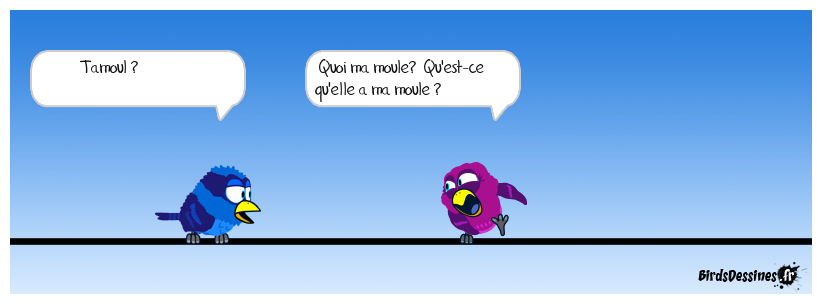 Case 1:Bird 1: Tamoul ? | Case 2: Bird 1: Quoi ma moule? Qu'est-ce qu'elle a ma moule ? | Case 3: