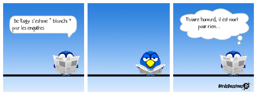 Case 1:Bird 1: De Rugy s’estime « blanchi » par les enquêtes | Case 2: | Case 3: Bird 1: Pauvre homard, il est mort pour rien...