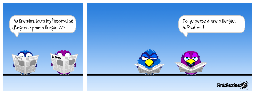 Case 1:Bird 1: Au Kremlin, Navalny hospitalisé d'urgence pour allergie ??? | Case 2: | Case 3: Bird 1: Moi je pense à une allergie, à Poutine !