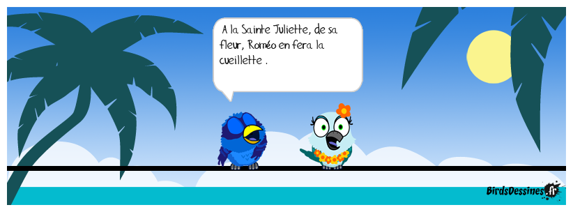 Case 1: | Case 2: Bird 1: A la Sainte Juliette, de sa fleur, Roméo en fera la cueillette . | Case 3:
