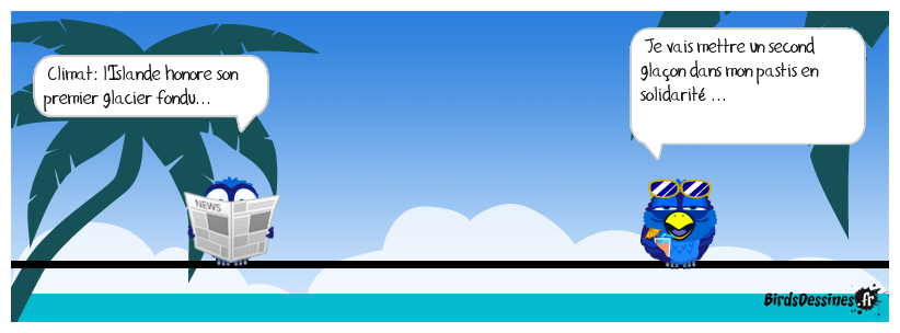 Case 1:Bird 1: Climat: l'Islande honore son premier glacier fondu... | Case 2: | Case 3: Bird 1: Je vais mettre un second glaçon dans mon pastis en solidarité ...
