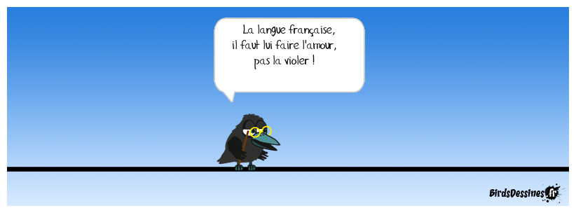 Case 1: | Case 2: Bird 1: La langue française, il faut lui faire l'amour, pas la violer ! | Case 3: