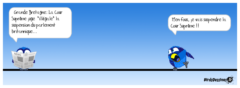 Case 1:Bird 1: Grande Bretagne: La Cour Suprême juge "illégale" la suspension du parlement britannique... | Case 2: | Case 3: Bird 1: M'en fous, je vais suspendre la Cour Suprême !!