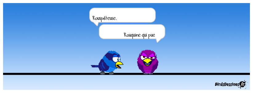 Case 1: | Case 2: Bird 1: Rouspéteuse. Bird 2: Rouquine qui pue | Case 3: